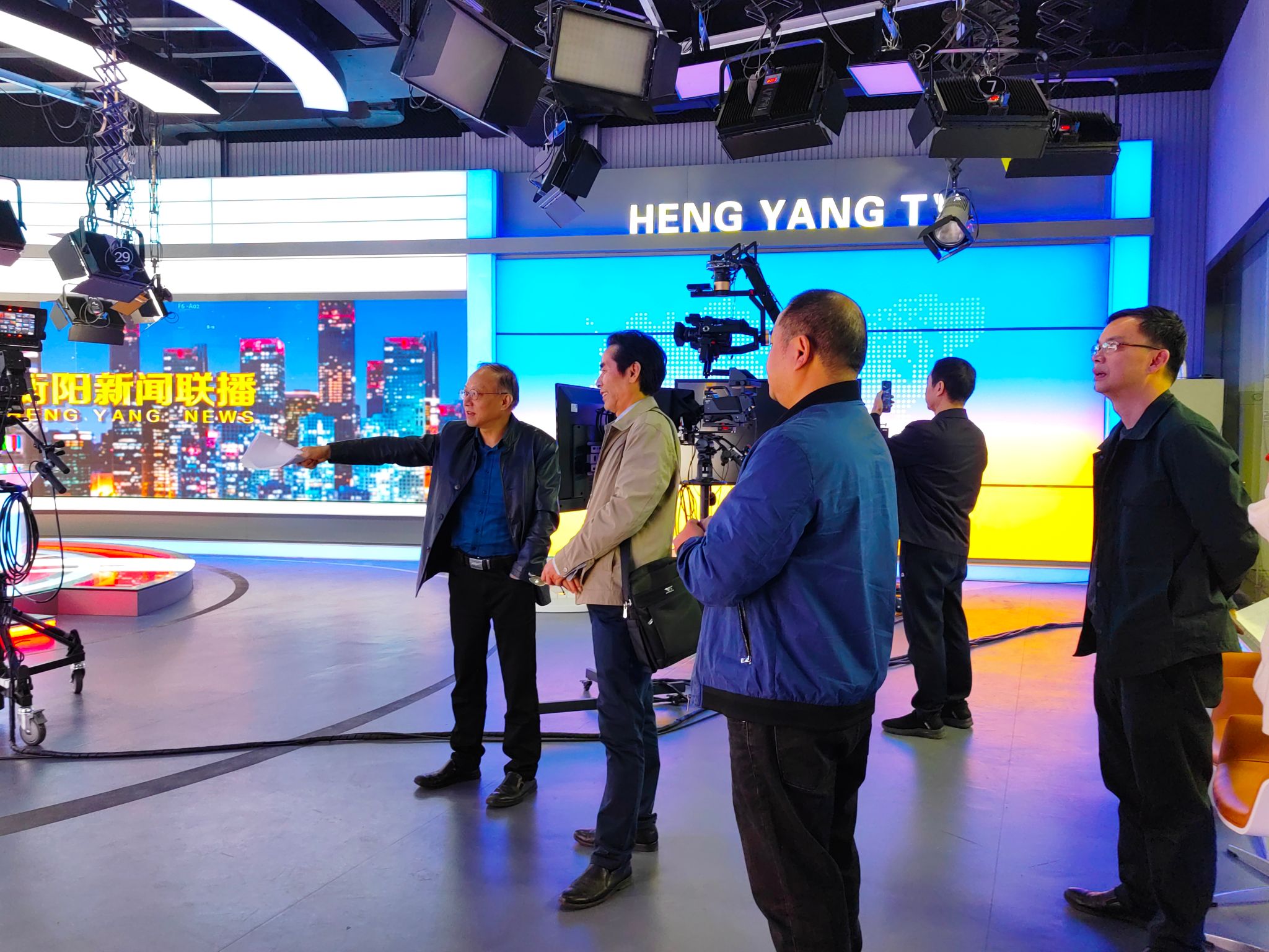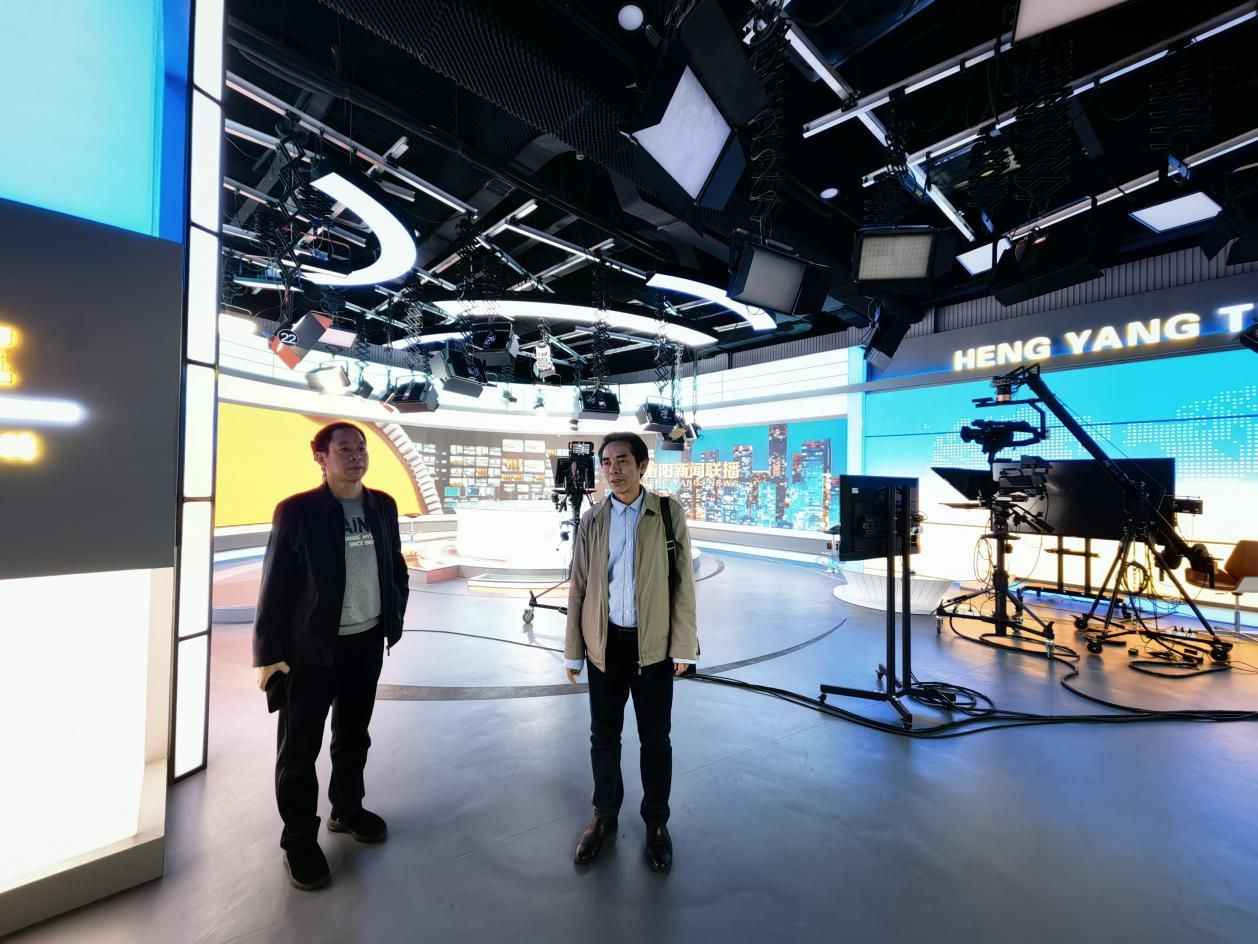 2024年10月29日下午,新闻与传播公司党总支书记彭晖、经理彭军辉、副经理罗兵一行来到衡阳市广播电视台实践教学基地进行考察,实地走访了电视台演播大厅、电视新闻录制口播室、视频编辑机房、电视新闻合成制作室、广播录音棚、融媒体演播室、电视节目播出控制中心等实践教学场所。衡阳市广播电视台副台长肖雄、总编室主任全青松等陪同并对实践教学基地进行介绍。