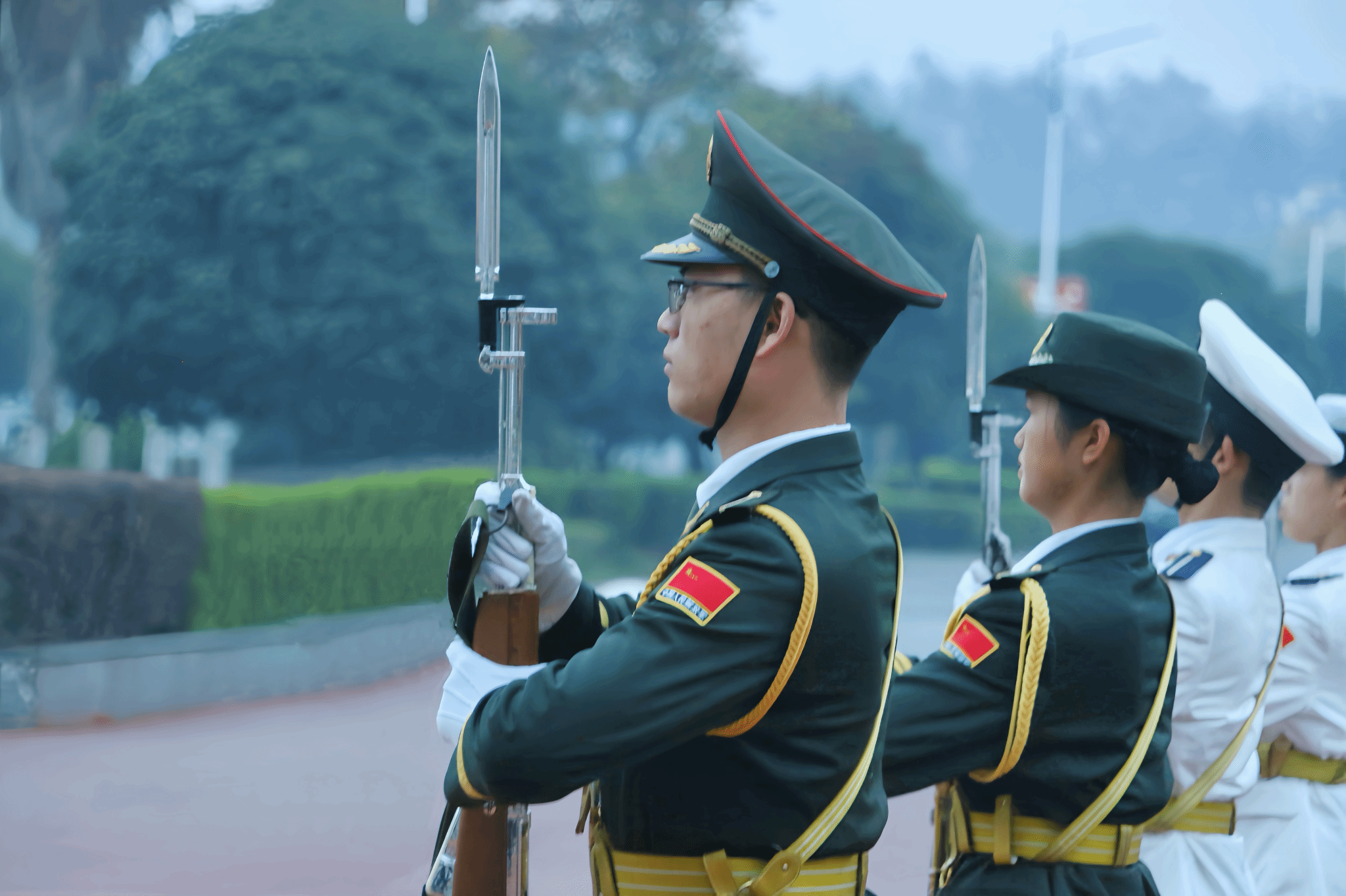 2024年11月4日清晨,升旗仪式在红旗广场隆重举行,雄壮激昂的国歌声,护旗手昂首阔步,身姿挺拔如松。