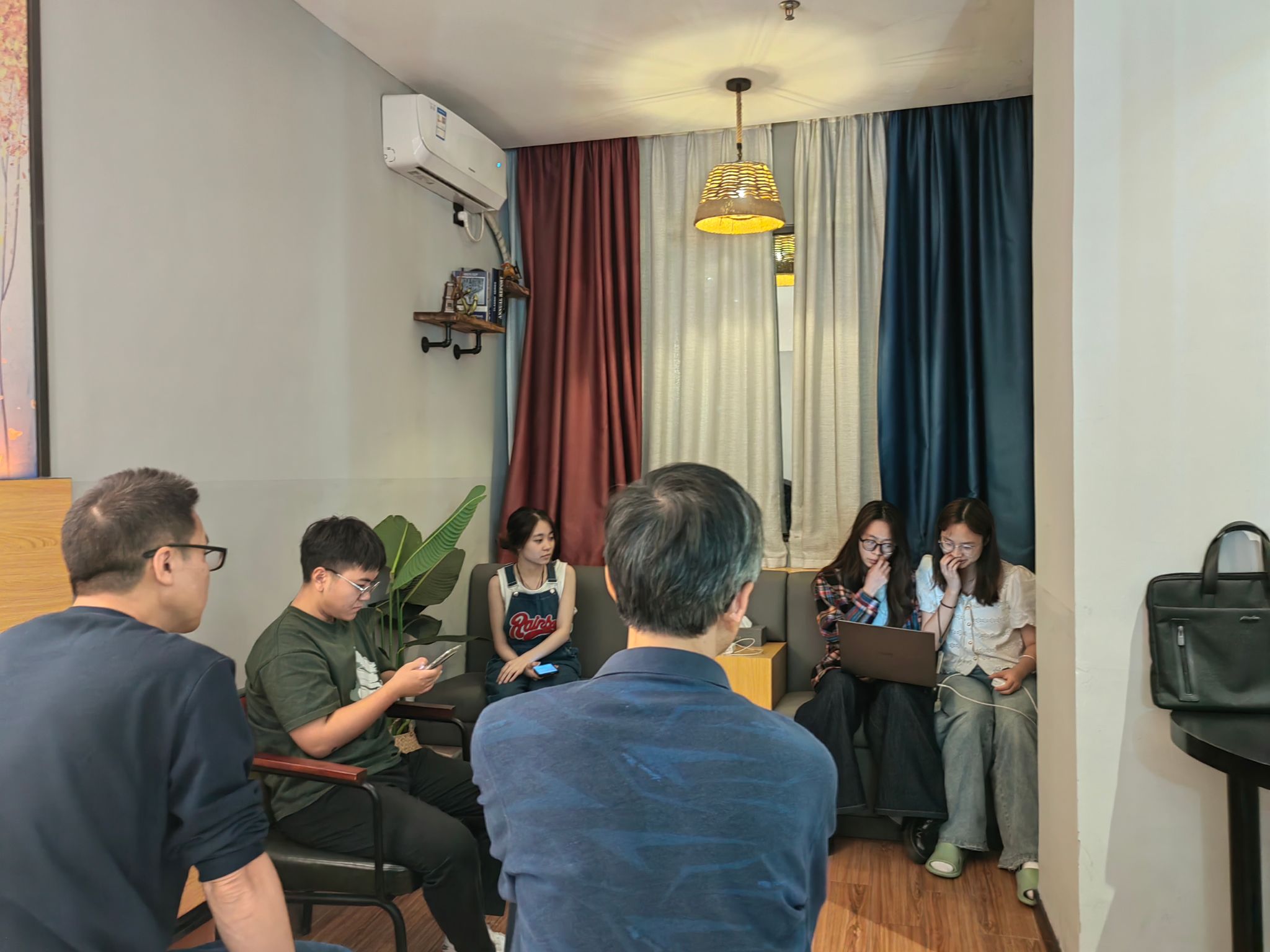 晚上九点,各组组长汇报选题,老师提出修改意见,指明重点和拍摄注意事项,并为接下来的工作做好安排。