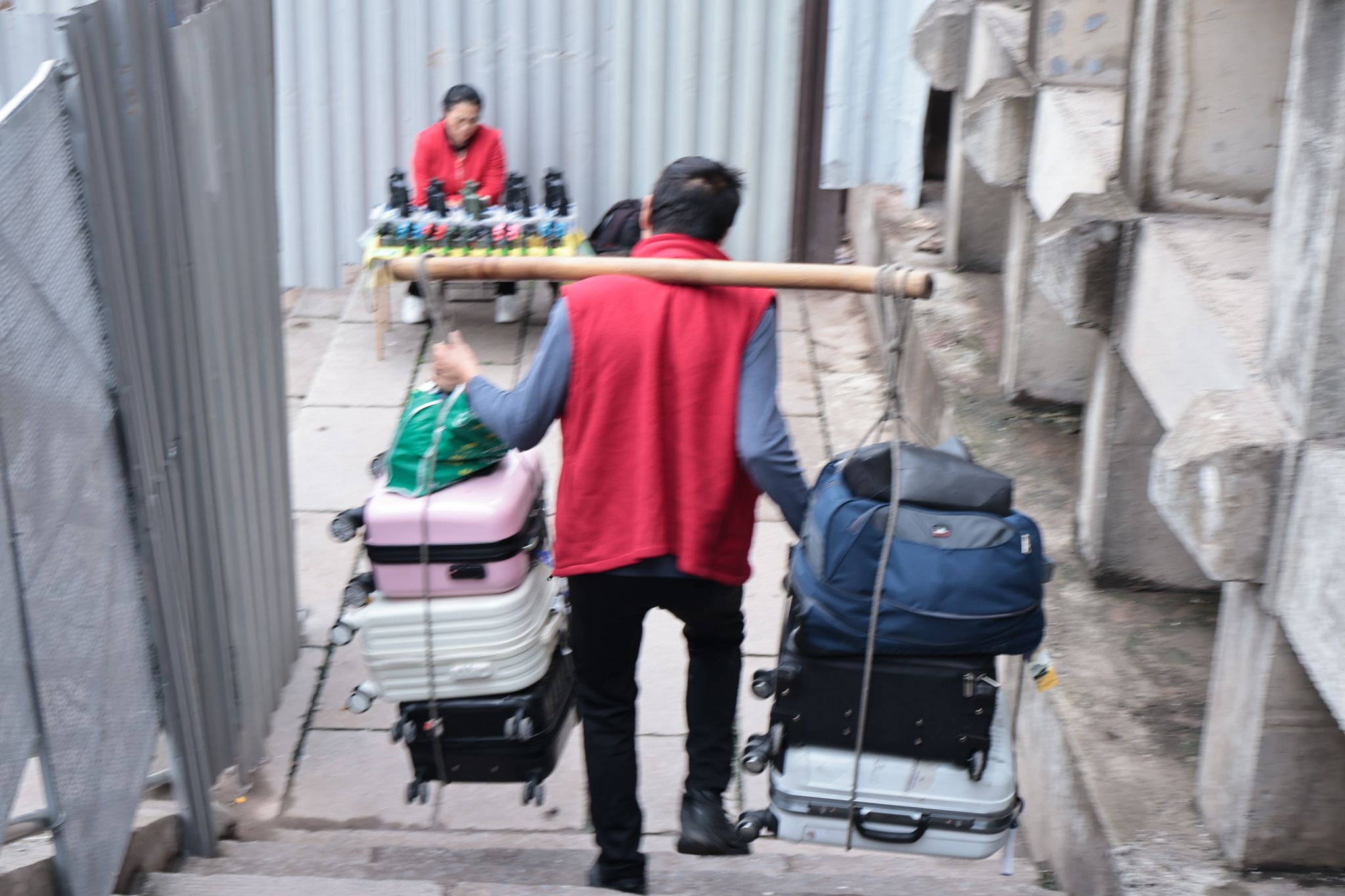 12日上午,两个见习小组来到了朝天门码头拍摄“山城棒棒军”。朝天门码头位于长江与嘉陵江两江交汇处,是重庆最大的水码头。江面船帆林立,舟楫穿梭,码头与繁华的商圈来福士相邻。山城以其独特的地理环境孕育出了这样一个特殊的行业,作为山城的符号名片,这些“棒棒”们爬坡上坎,四处揽客,靠着肩上一米长的竹竿,扛出了重庆特有的码头文化,也扛起了重庆的经济发展。