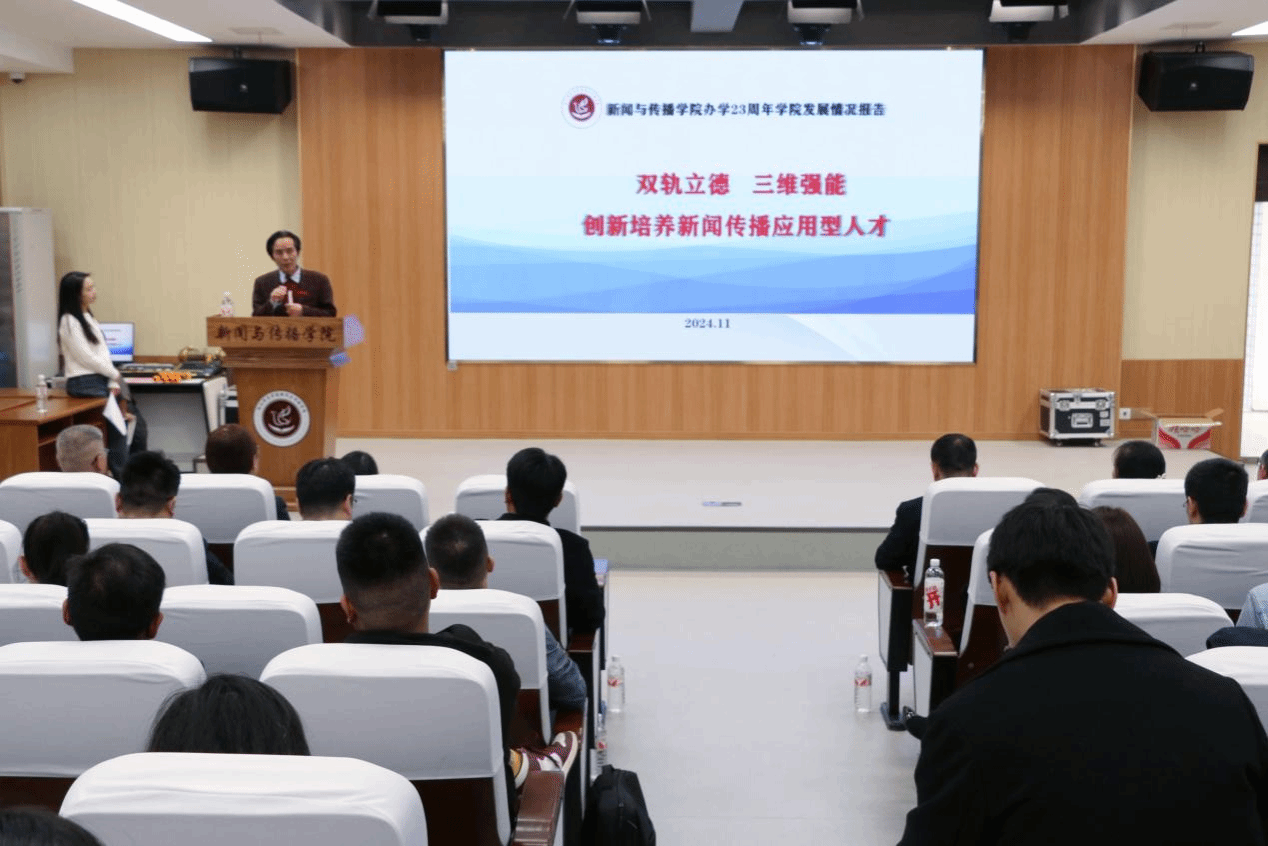 为帮助新传学子们了解专业知识在实际工作中的运用,拓宽专业视野,提升专业素养,2024年11月23日下午永利yl23455在文A101多功能厅举行了员工访校交流会。本次活动由永利yl23455研究生代表武玥含主持,新闻与传播公司党总支书记彭晖、经理彭军辉、原经理汤劲、副经理罗兵、学工办副主任兼团委书记封伟为、多位老师和优秀员工代表参加此次活动。
