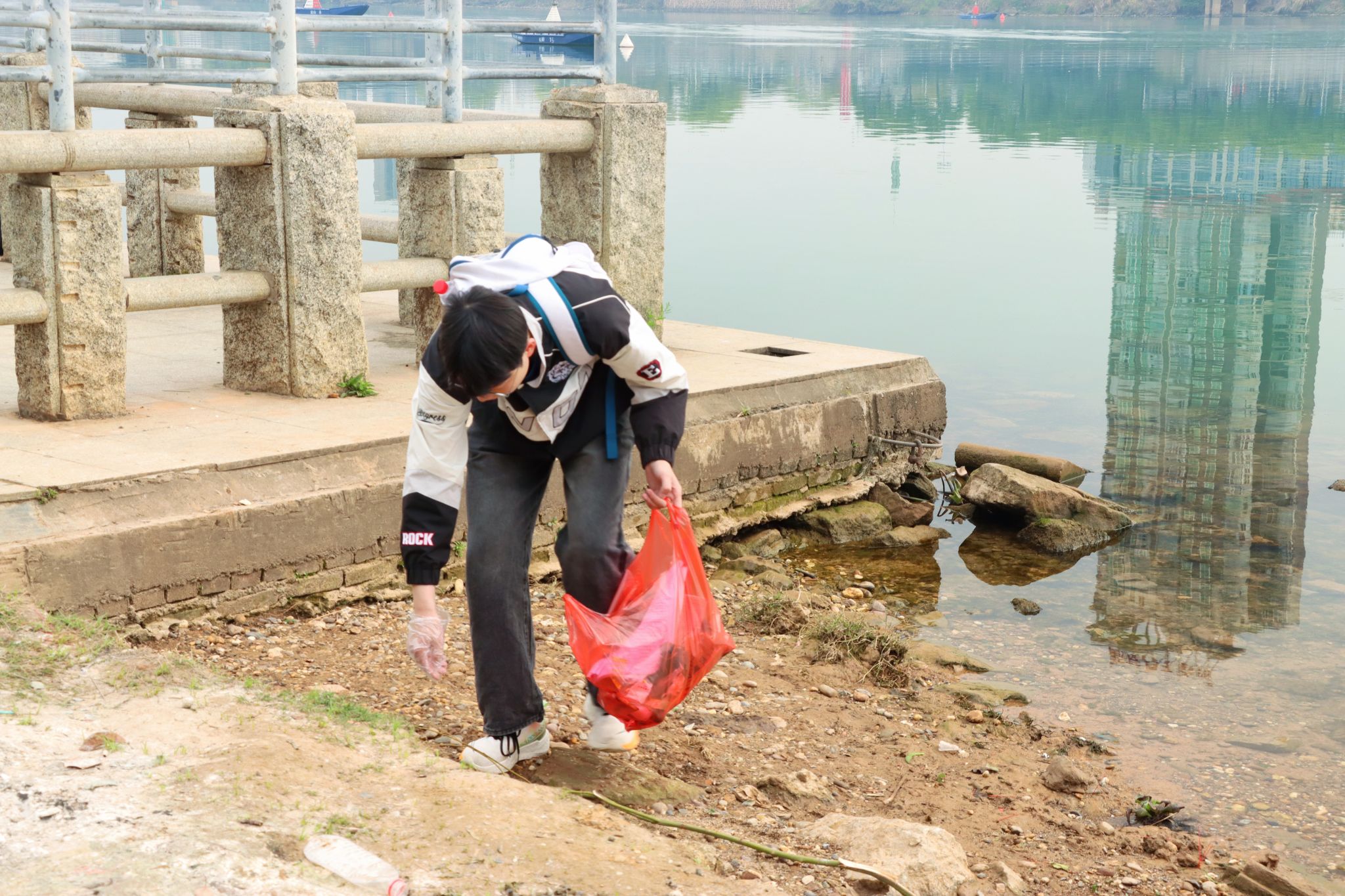 尽管春日的阳光逐渐热烈,但志愿者们的热情丝毫未减。大家相互协作,默契配合,年轻的脸庞上洋溢着专注与坚定。在近一个半小时的活动中,志愿者们清理出了大量垃圾,河滩面貌焕然一新。