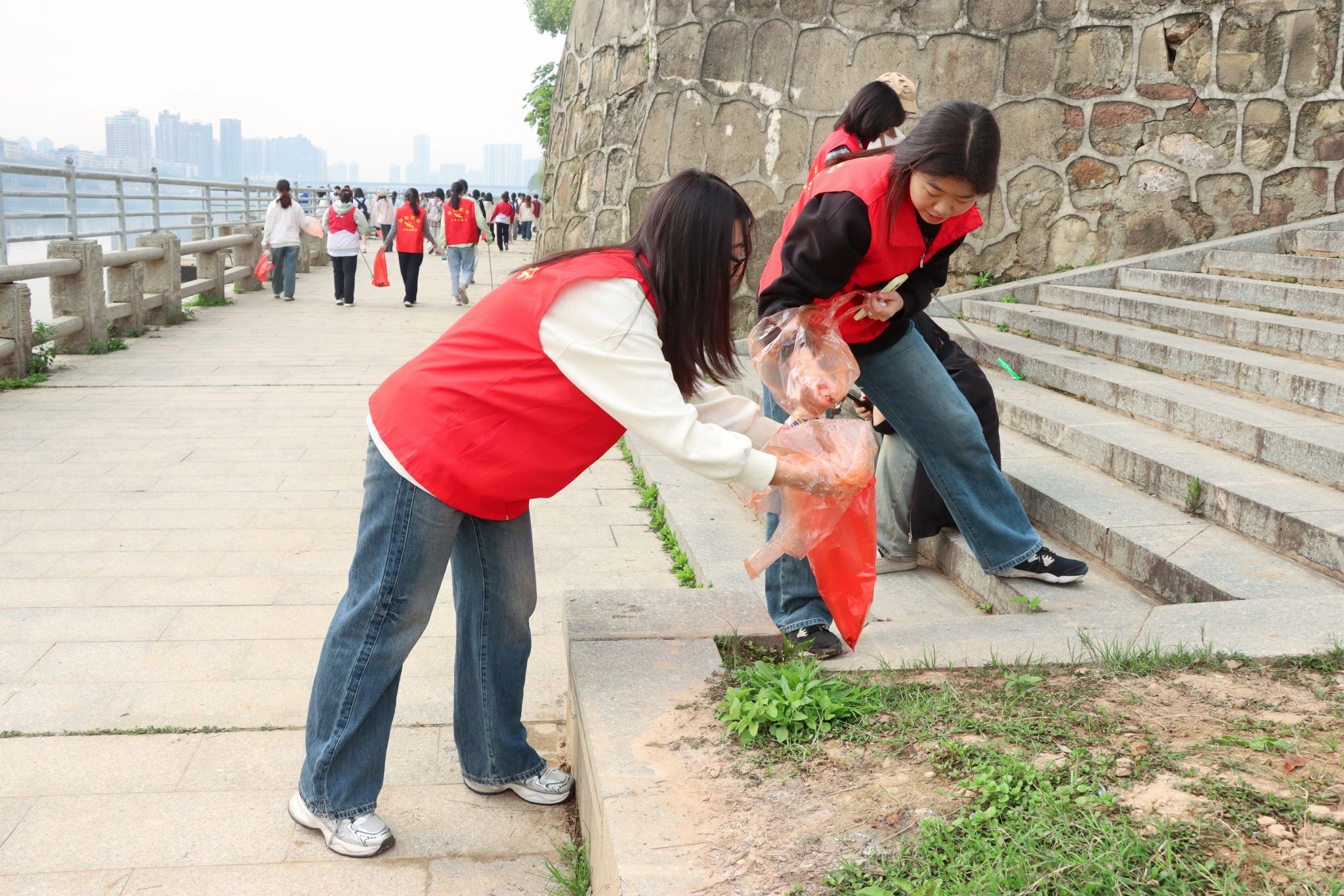 活动过程中,志愿者们分工明确,行动高效。一部分志愿者沿着湘江岸边仔细巡查,认真观察河道周边环境,对发现的垃圾、杂物等进行清理;另一部分志愿者则手持垃圾袋、夹子等工具,对河滩上及花坛里的烟头、塑料瓶、包装袋等垃圾进行清理。大家不怕脏、不怕累,不放过任何一个卫生死角。