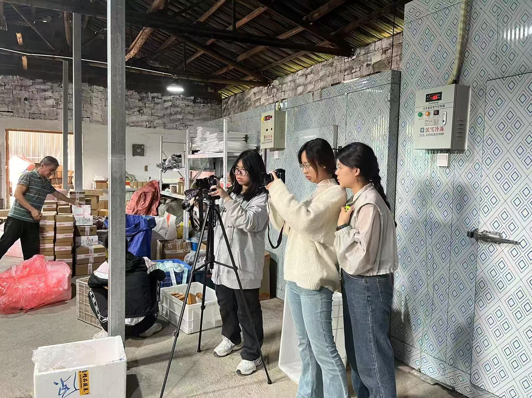 目前,部分小组已经完成了策划案和脚本的最终定稿,并顺利进入拍摄阶段。胡佳音小组兵分两路:一组跟拍农民工的送菜、收菜流程;另一组则全程拍摄采访对象的电商直播过程,捕捉创业者的工作风采。一整天虽然忙碌,但是收获满满,每个小组成员都认真参与,积累了很多有用的摄影素材。