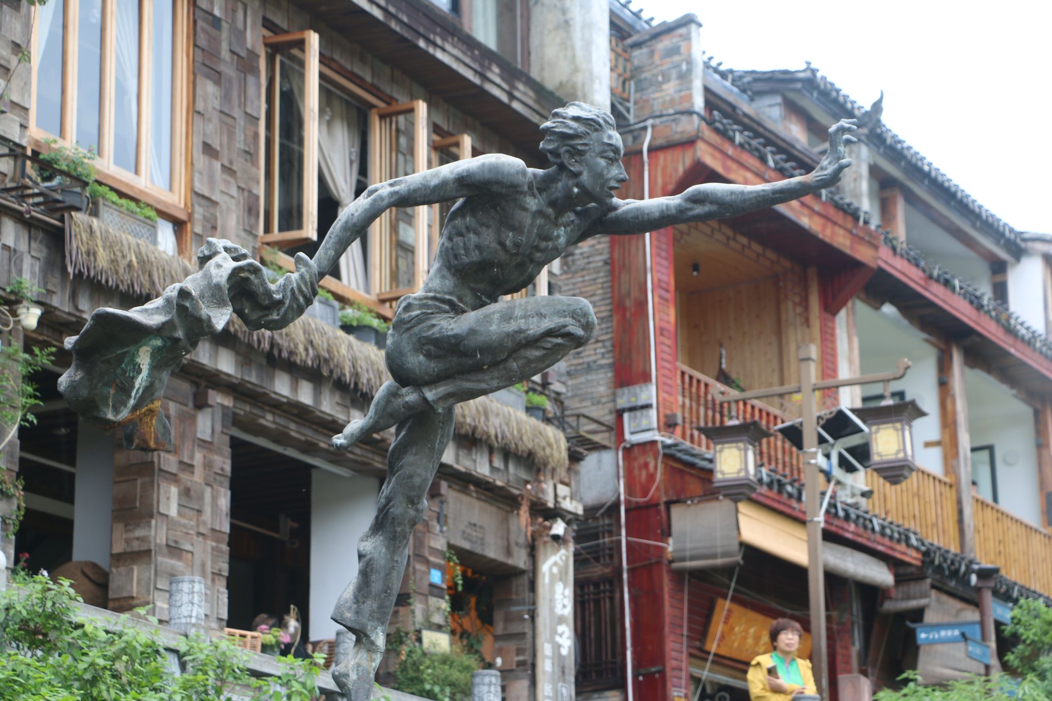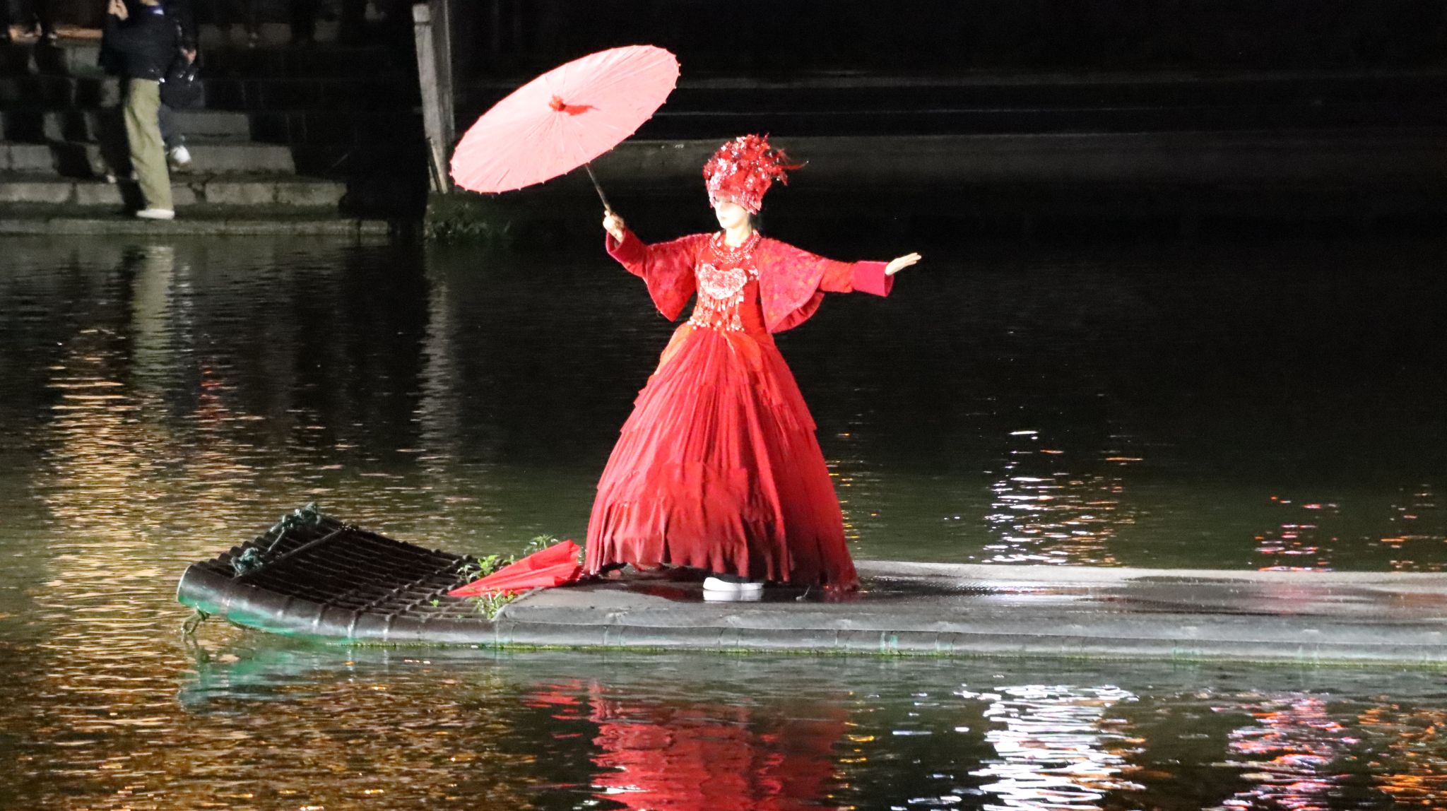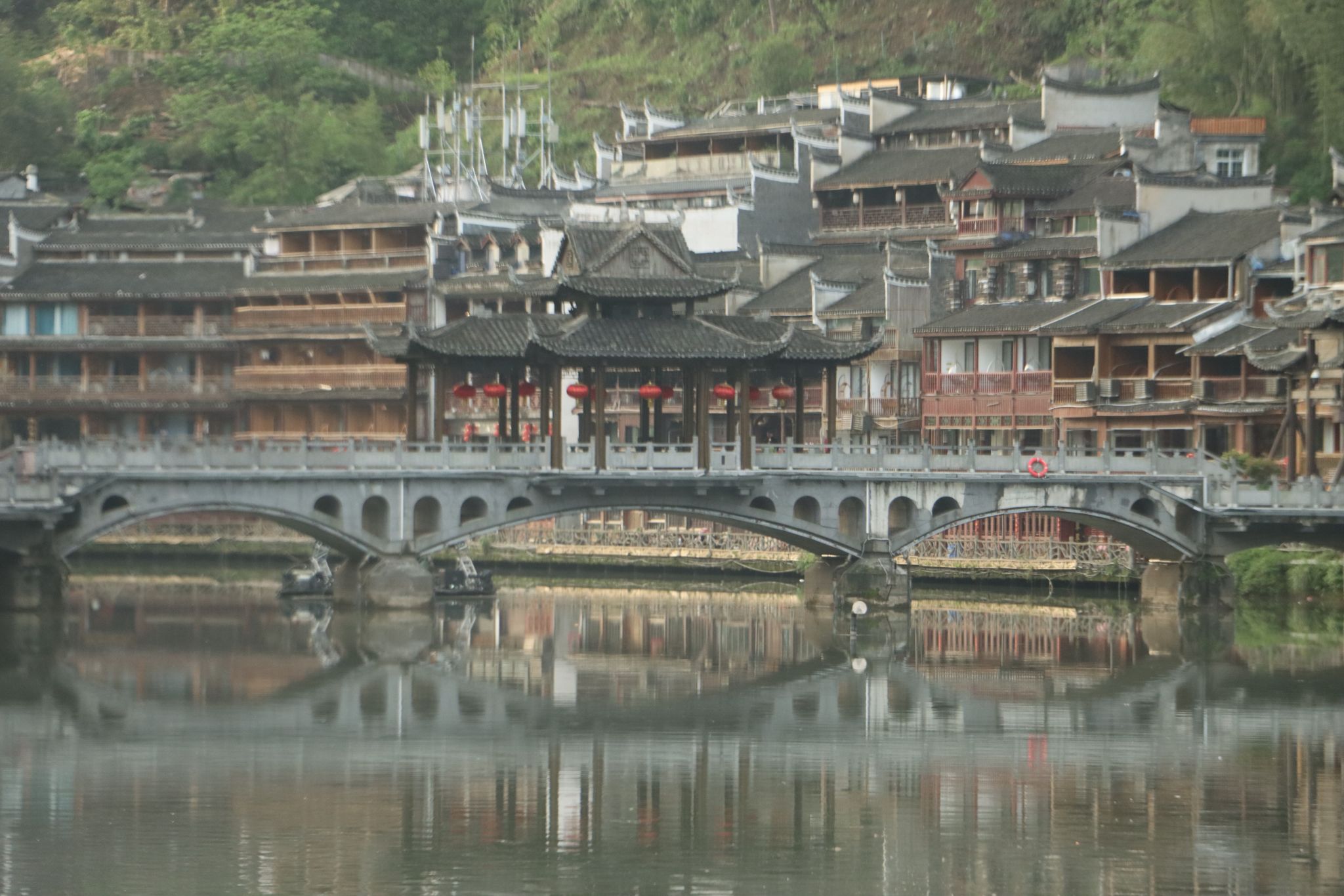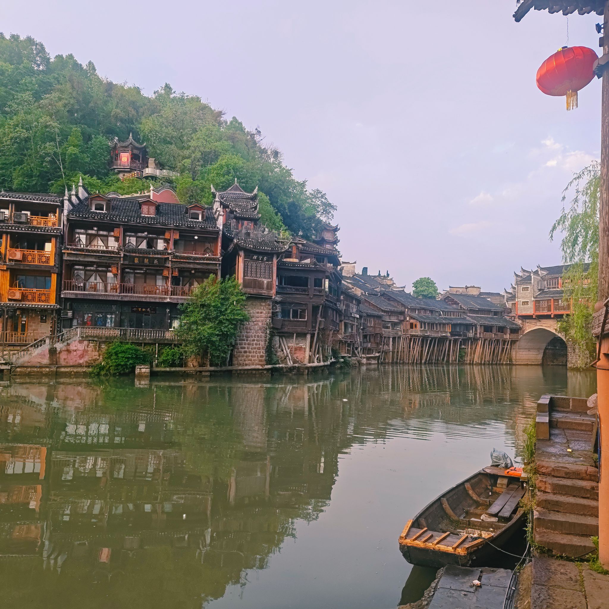 新线靠旧线拉紧上升,古老之上,孕育新生,如同古城。在回去的路上,我们遇见陈氏宗祠,瞻仰先人的事迹,时间如同沱河般静静流逝,夜幕降临,我们观看了表演,翠翠在河上翩翩起舞,一袭红衣卷入夜色,伴着古城的灯光定格下来,同时也刻进我们心里。