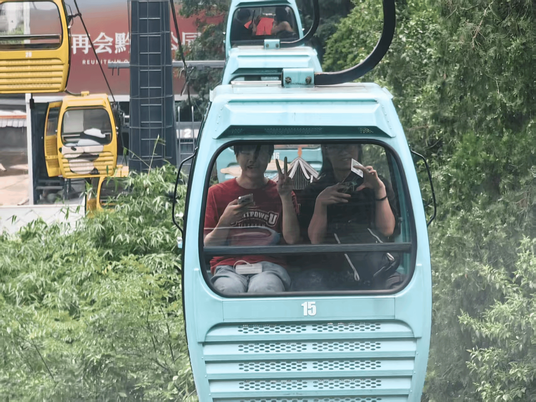 贵阳的山连绵不绝,铁穿梭于群山之间,穿越菜市场喧嚣,我们来到了黔灵山公园。坐上缆车,一座城市尽收眼底,猴子们热情好客,与山顶的瞰筑亭融为一体。弘福寺内红绸飘荡,那是人们虔诚的信仰。山腰还有大熊猫,熊猫星宝靠在独属于他的木头小床上,惬意的沐浴着阳光。傍晚,我们来到了红街夜市,烙锅、烧烤、米皮、洋芋粑的香味飘荡在街头,市井独有的烟火气此刻具象化了。