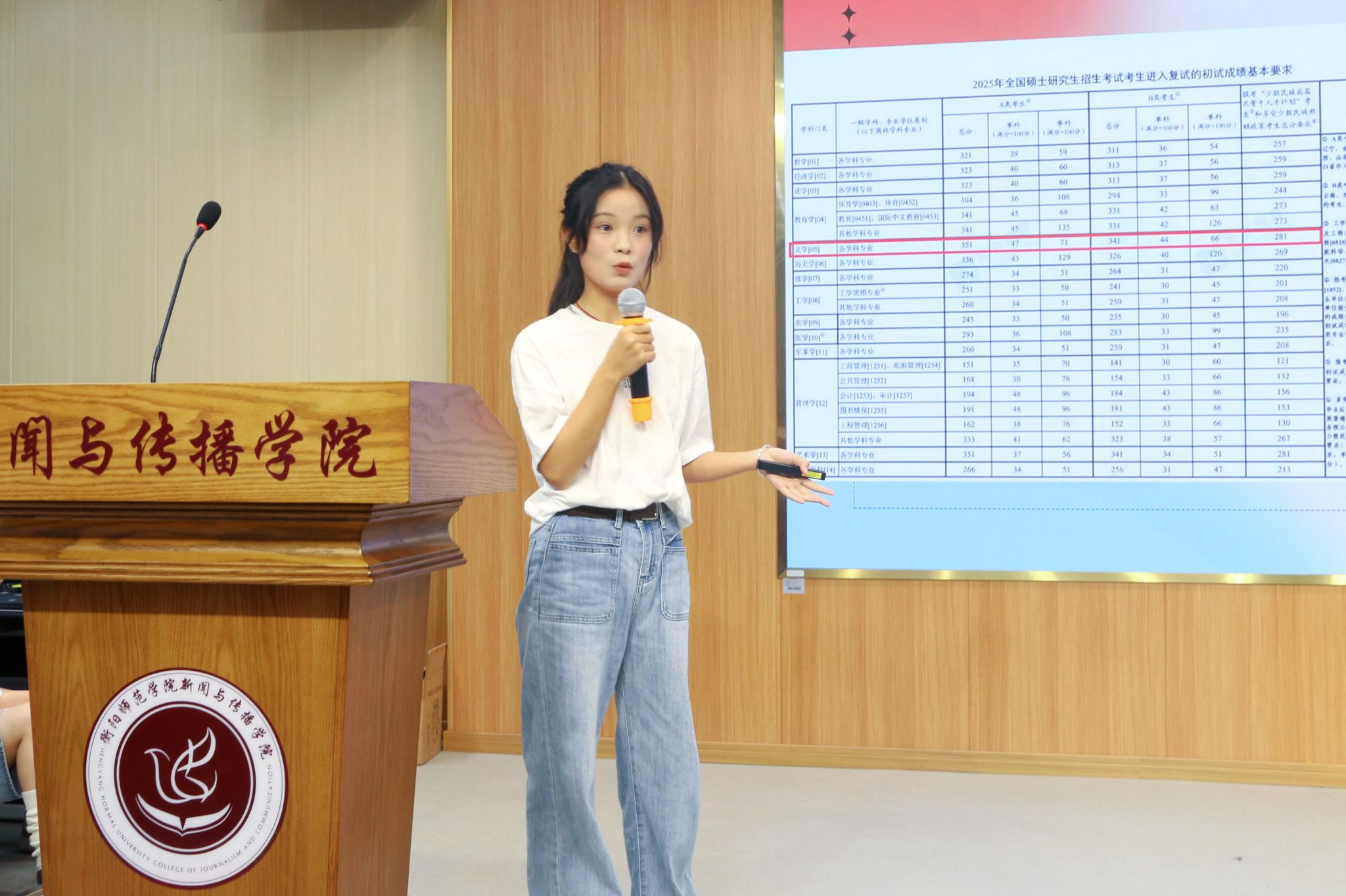 21级新闻学专业的朱彦姿学姐从认识论、方法论和实践论三个方面分享了自己的考研心得。她希望同学们明确考研目的,端正考研态度,并鼓励同学们勇敢向前,通过考研丰富人生经验。