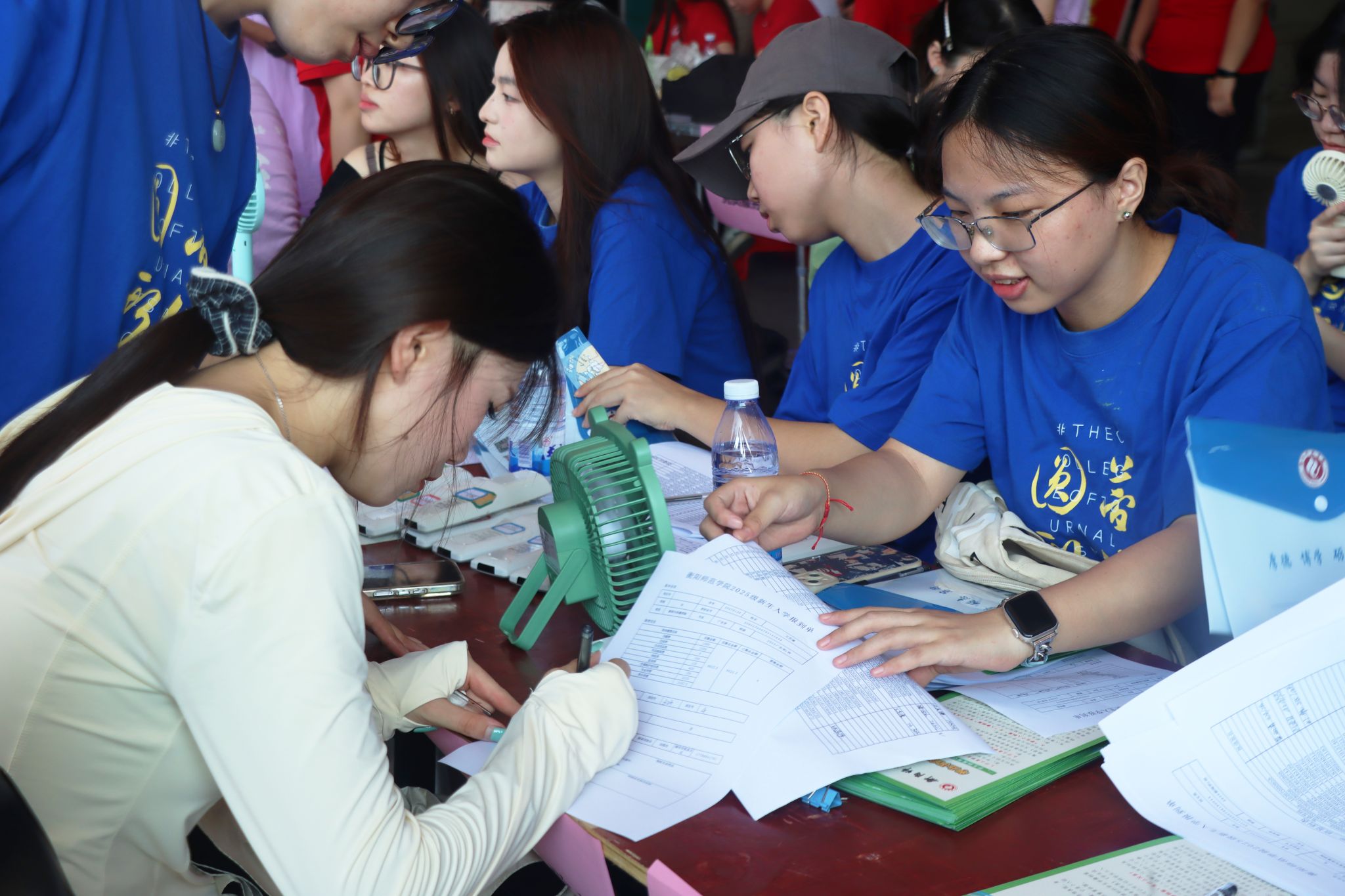 新生和家长们完成入学事宜之后,纷纷在打卡点与志愿者合影,记录下这成为“新传人”的第一份感动。