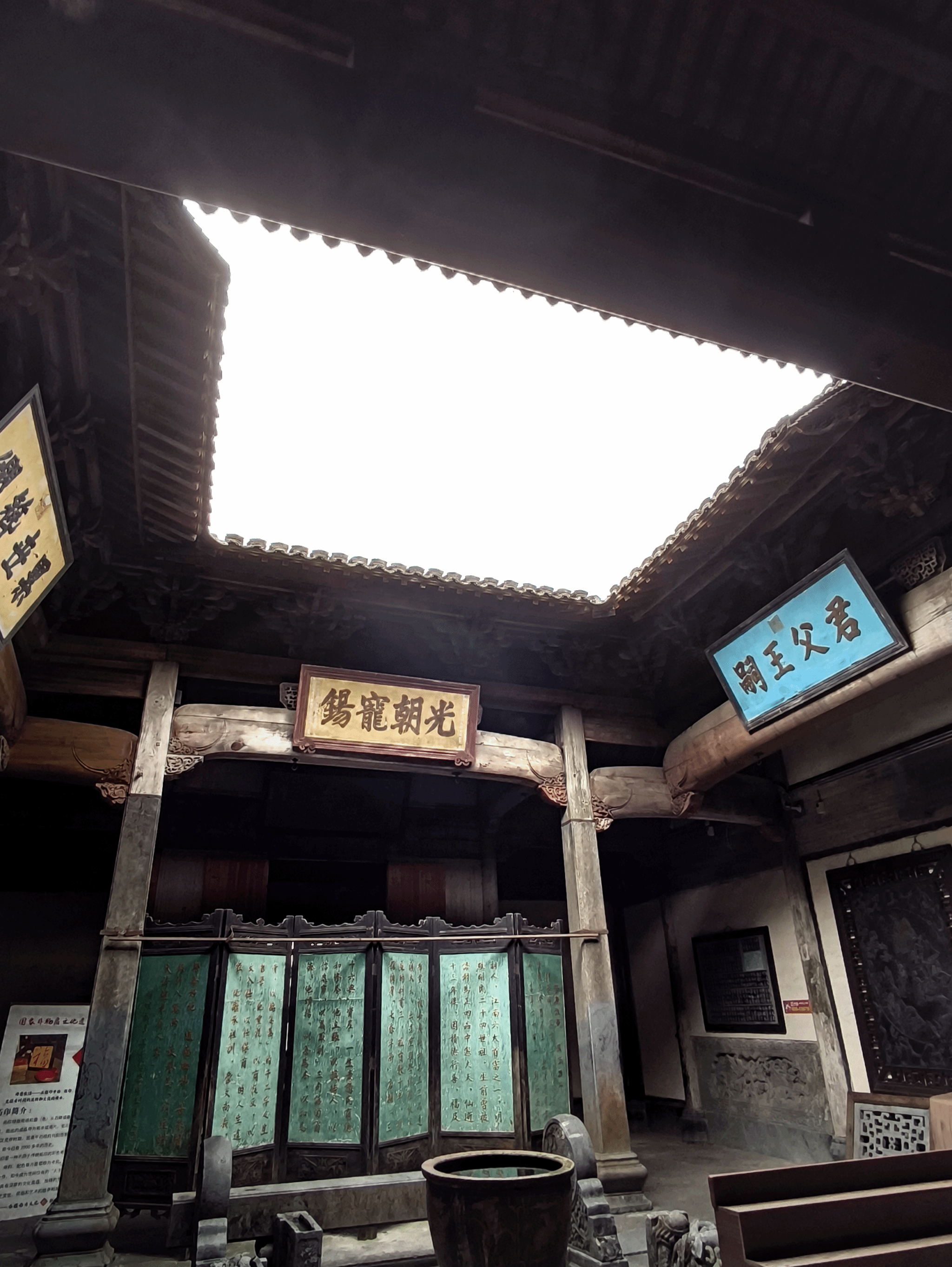 我们踏着晨露走向西递,远山与村落浸在淡蓝色的雾霭中,我们穿过窄巷,寻到那位刻字的老先生。他坐在木凳上,将岁月与故事一刀一刀刻进木纹里。他娓娓道来刻字的源流与变迁,也分享天南地北的旅人留下的言语与目光。那些已完成的刻字作品静静陈列,像时间的信物。随后,我们静静看他现场运刀,木屑轻扬,一笔一画渐次浮现。
