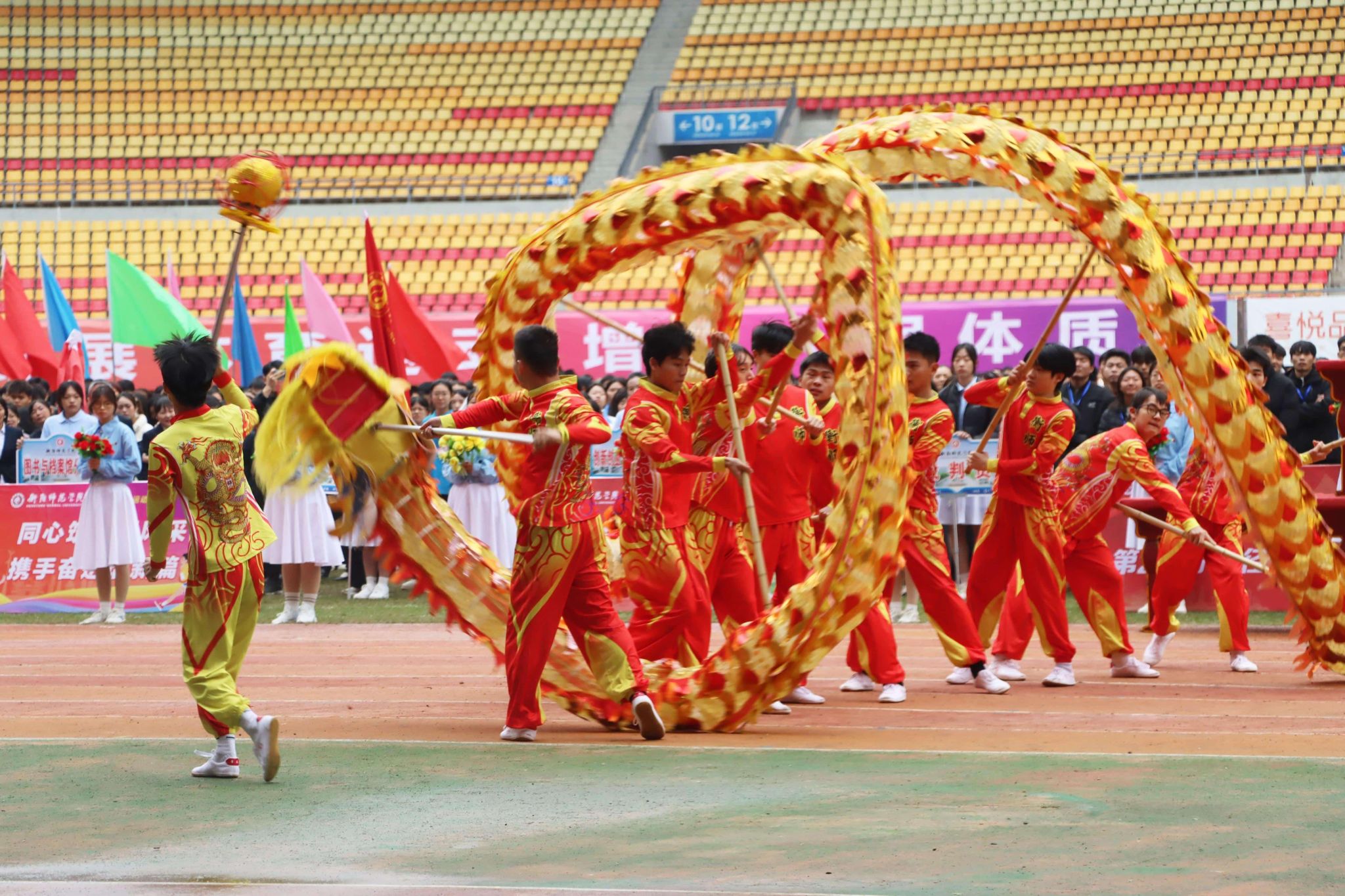 接下来是舞狮与舞龙表演
