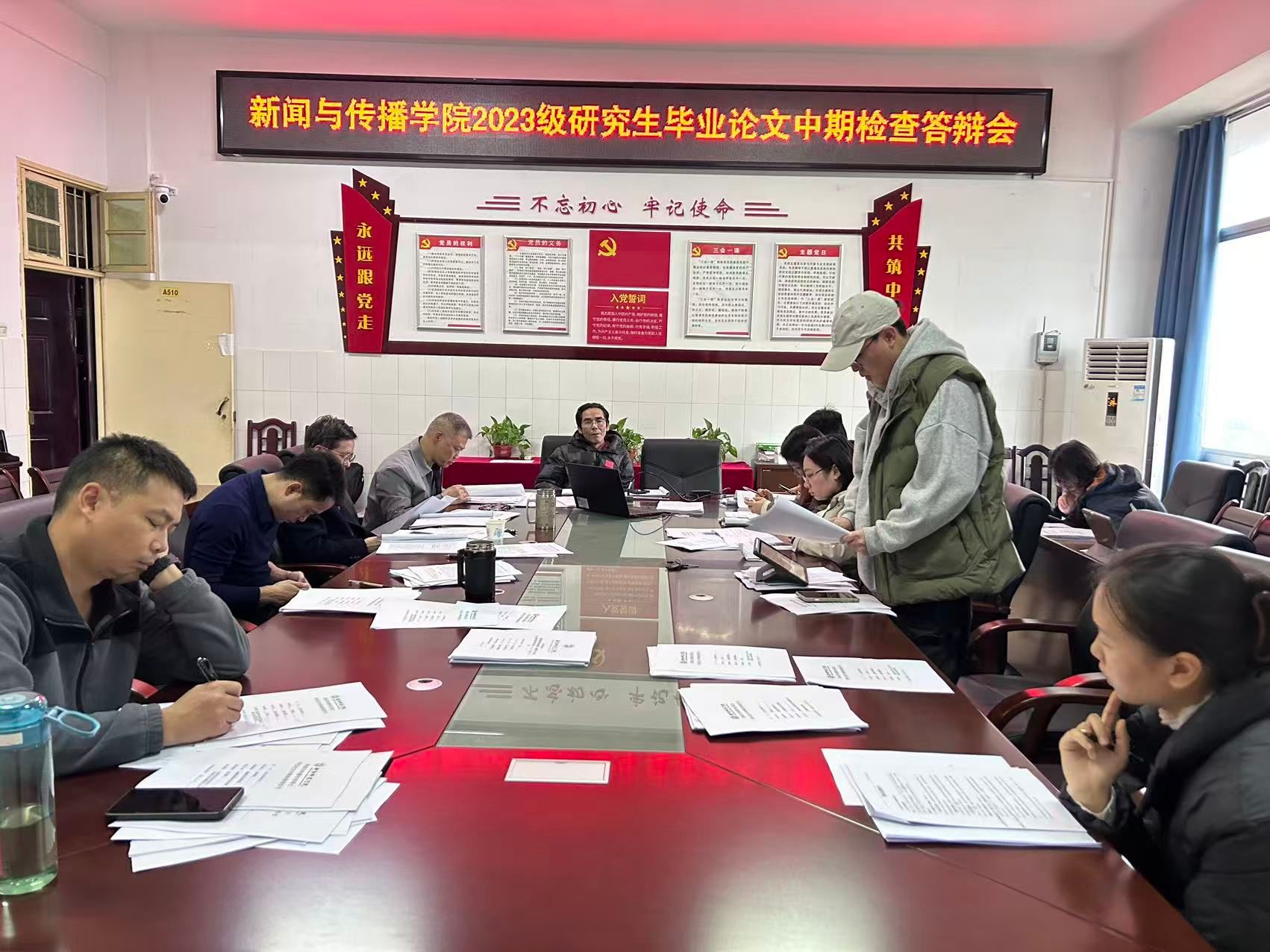 本次答辩会在仁智楼A510会议室举行,采用线上线下相结合的方式,覆盖网络与新媒体、新闻实务、品牌创意与文化传播三个研究方向,对研究生的中期研究进展进行全面考核与指导。研究生导师及2023级全体研究生共同参加了此次答辩会。