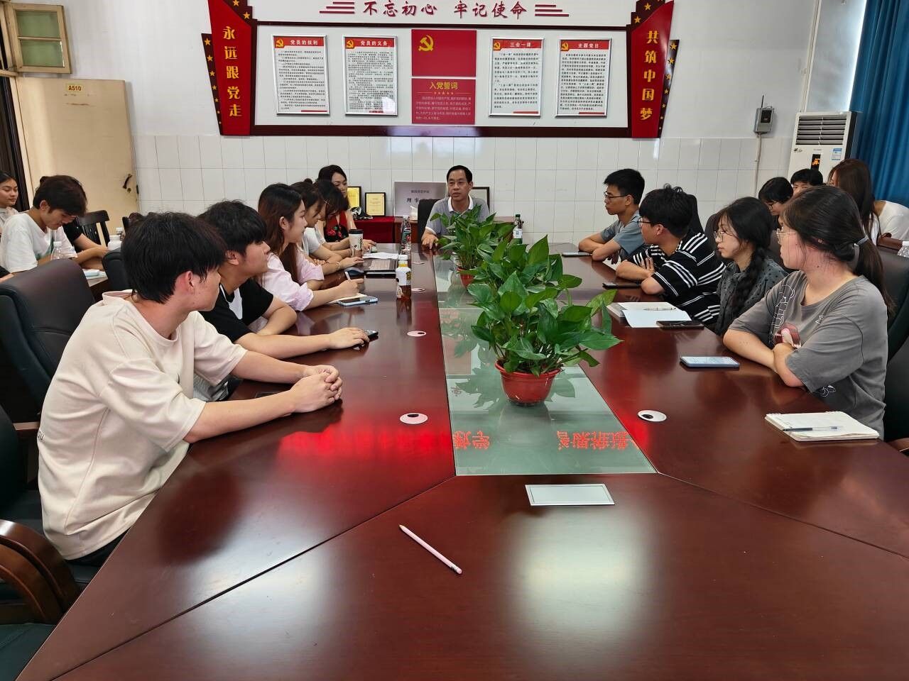 会议伊始,彭晖书记强调新生报到在即,需做好迎新工作,目前天气炎热,需班助、员工干部与志愿者克服困难,展示本院精神风貌。