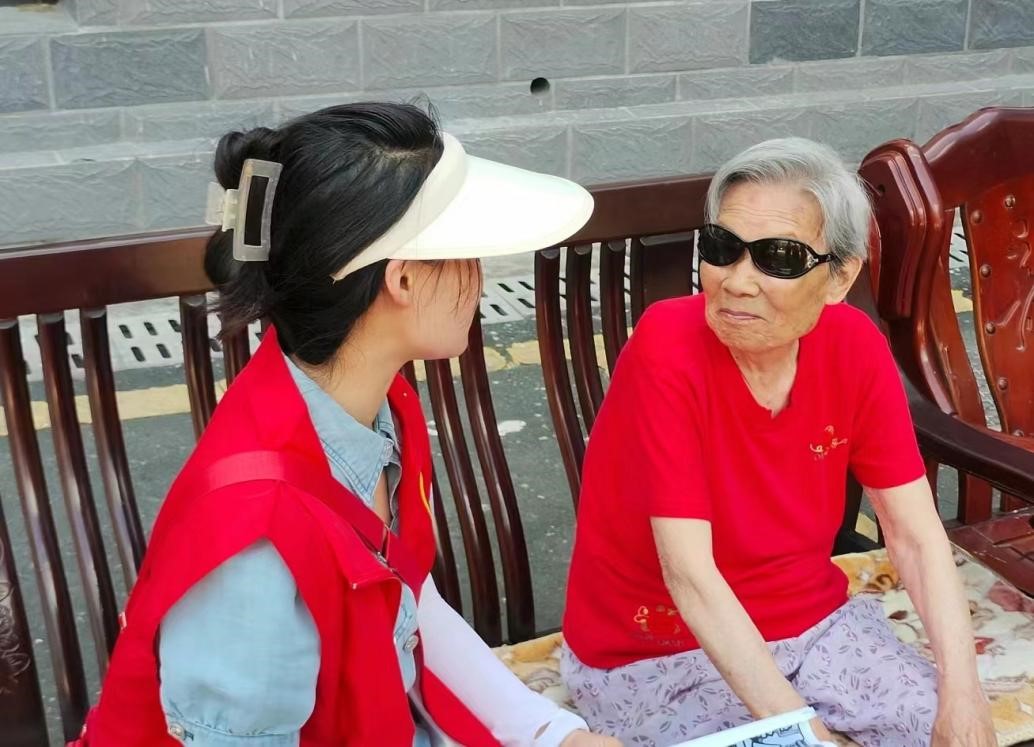 陪老人唠唠家常,认真地倾听老人的每一言、每一语,了解老人生活情况和身体健康状况,鼓励他们多参与社区老年活动,用微笑温暖彼此心灵。