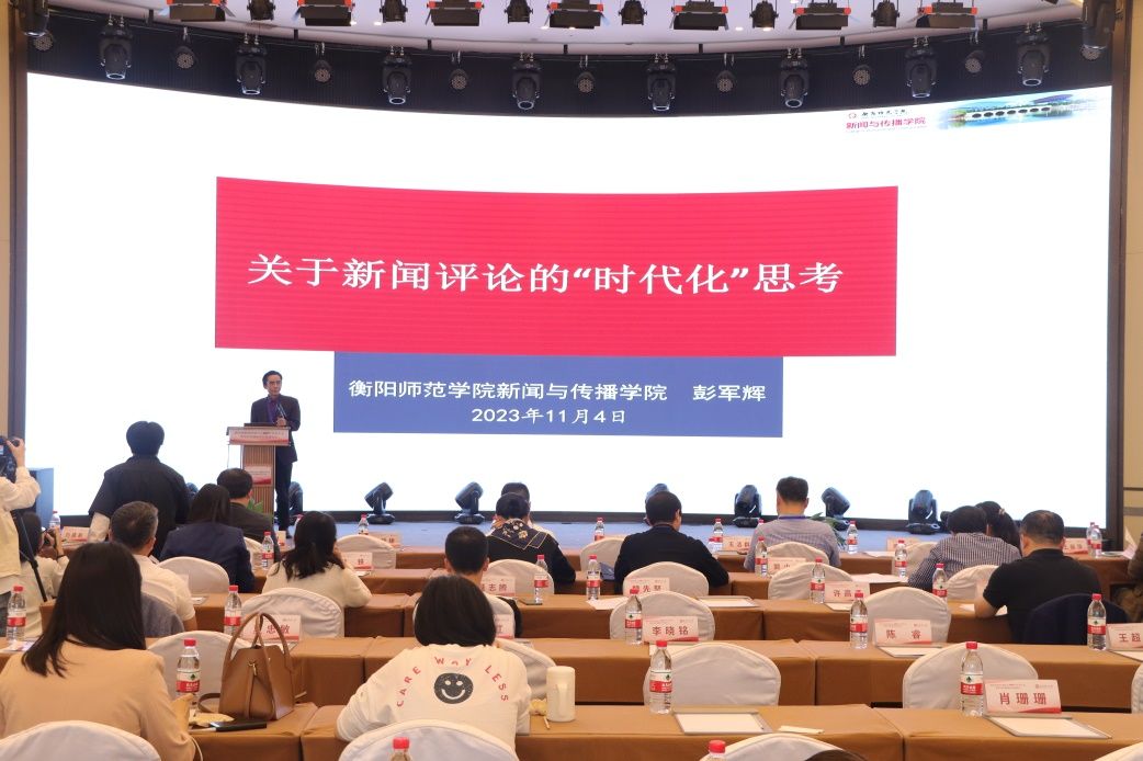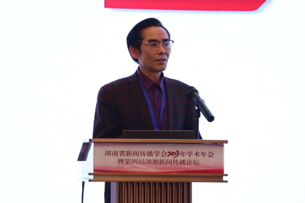 在主题演讲环节,湖南大学岳麓学者特聘教授雷跃捷,复旦大学新闻公司副经理周葆华,湖南省新闻传播学会会长、湖南大学岳麓学者彭祝斌教授等先后进行演讲。湖南省新闻传播学会常务理事、副会长、永利yl23455经理彭军辉教授以《关于“新闻评论”的时代化的思考》为题,就新闻评论的概念重构、新闻评论的建构知识功能、新闻评论时代化的实践方法等,作了精彩发言。