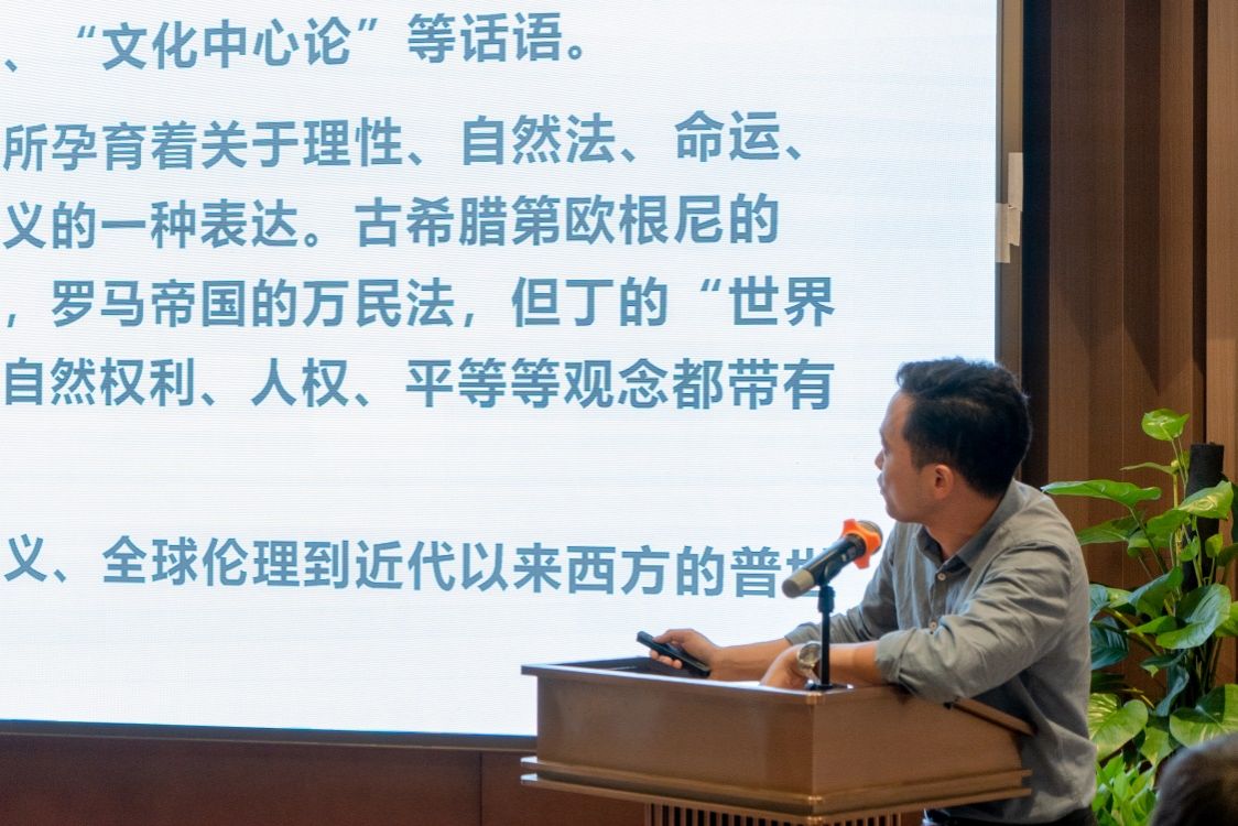 主题演讲结束后进行了“中国式现代化与新闻传播教育”和“中国式现代化与文化传播创新”的主题论坛。公司赵立敏教授在论坛上做题为《从世界主义到文明交流互鉴,东西方对话哲学的理路与反思》的演讲,从东西方对话哲学的理路与反思角度开展文明交流互鉴的分析与探讨,引起热烈反响。