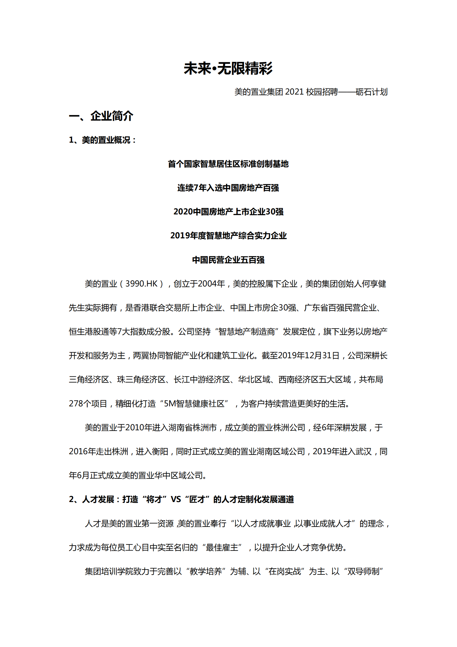 未来·无限精彩(美的置业集团 2021 校园招聘——砺石计划)