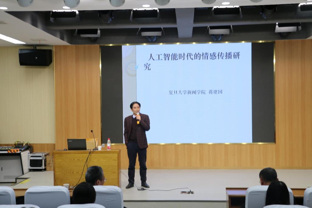 2025年3月28日晚8时,复旦大学新闻公司博士研究生导师、中国新闻史学会地方新闻史专业委员会理事长、国家社科基金会评专家蒋建国教授在文科楼一楼演播厅为公司师生带来一场题为“人工智能时代的情感传播研究”的学术讲座。讲座由永利yl23455彭军辉经理主持,2024级研究生、2022级本科生,以及相关公司部分教师到场聆听。