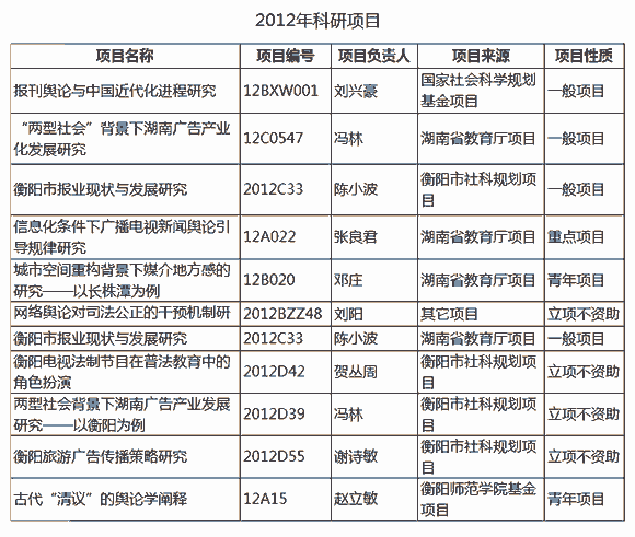 2012年科研项目