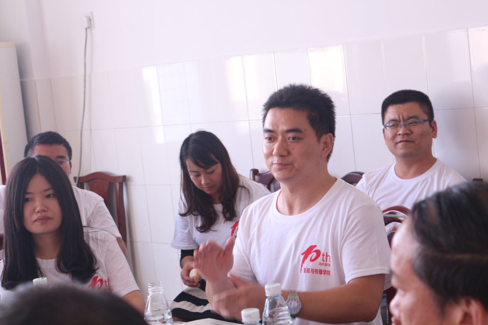 即使别离10年之久,老师也依然能一眼认出每一个同学,班会在师生们的欢声笑语中拉开帷幕。学长学姐们身着统一的白色纪念T恤,T恤上醒目的红色“10th”和“永利yl23455”字样,寄予了学长学姐们对于这次班会满满的热情与期待。来自天南地北的20多位同学参加了此次聚会。