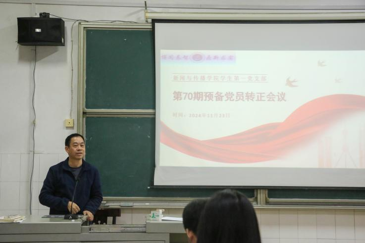 2024年11月23日,公司员工第一党支部预备党员转正会议于文科楼A609顺利召开。新闻与传播公司党总支书记彭晖、党总支副书记董自雄、员工第一党支部书记刘国杰出席会议。员工第一党支部组织委员曾雨恬主持会议,员工第一党支部全体在校员工党员到场参会,部分员工党员线上参会。
