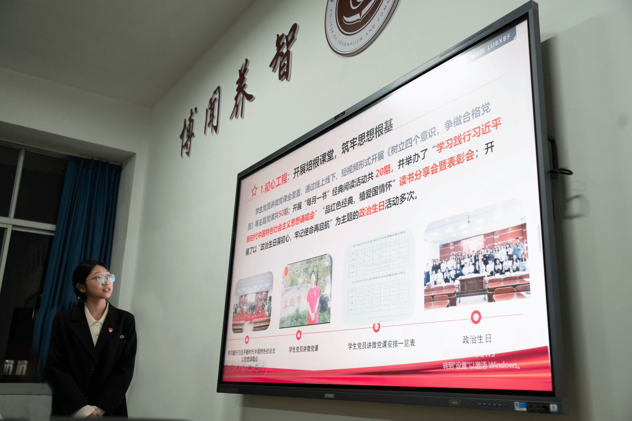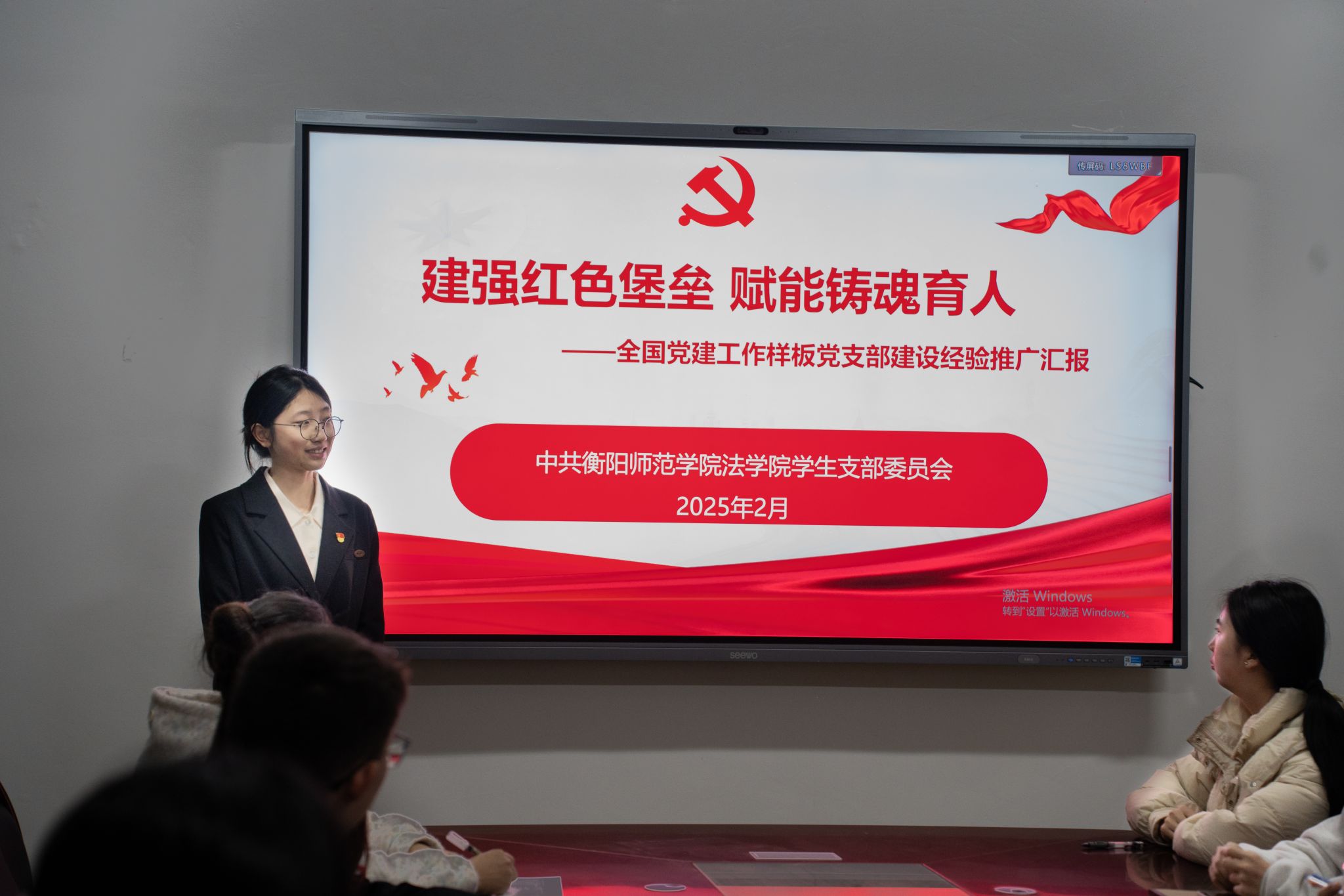 法公司党员代表杨茹珺以“建强红色堡垒,赋能铸魂育人”为主题,系统介绍了样板党支部的建设经验。她提到,法公司通过“三会一课”制度规范化、主题党日活动品牌化、党员先锋作用常态化“三化联动”,打造了“党建+法苑众谈”“党建+纵横历史协会”双轮驱动模式。例如,建设红色文化长廊、设置红色读书角,依托模拟法庭、社区普法宣讲等活动,将专业实践融入党性教育。