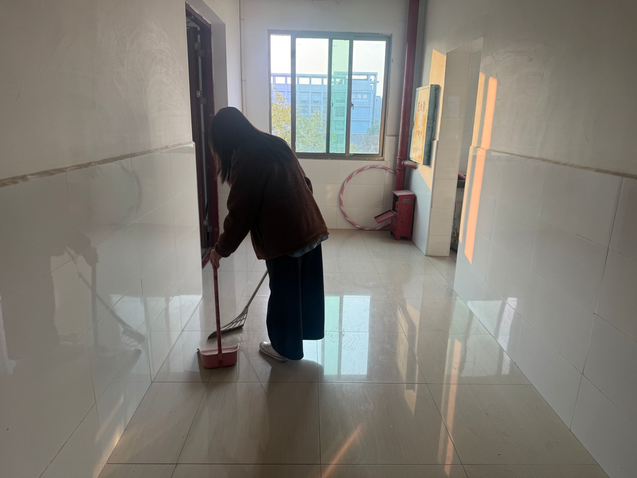 宿舍楼的环境卫生是一项重点内容。检查组既查看地面清洁度,也关注物品摆放规范性。对卫生存在不足的地方立刻进行清理打扫。