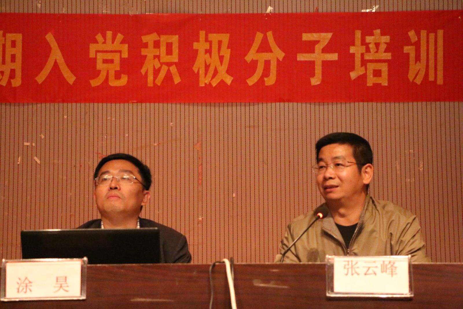 10月19日晚,永利yl23455第五十一期入党积极分子培训第五次讲座在模拟演播厅如期举行。本次培训由衡阳师范公司党委委员涂昊主讲,新闻与传播公司党总支书记张云峰,党总支副书记周思敏,员工辅导员齐春媚和190名2016级员工聆听讲座。